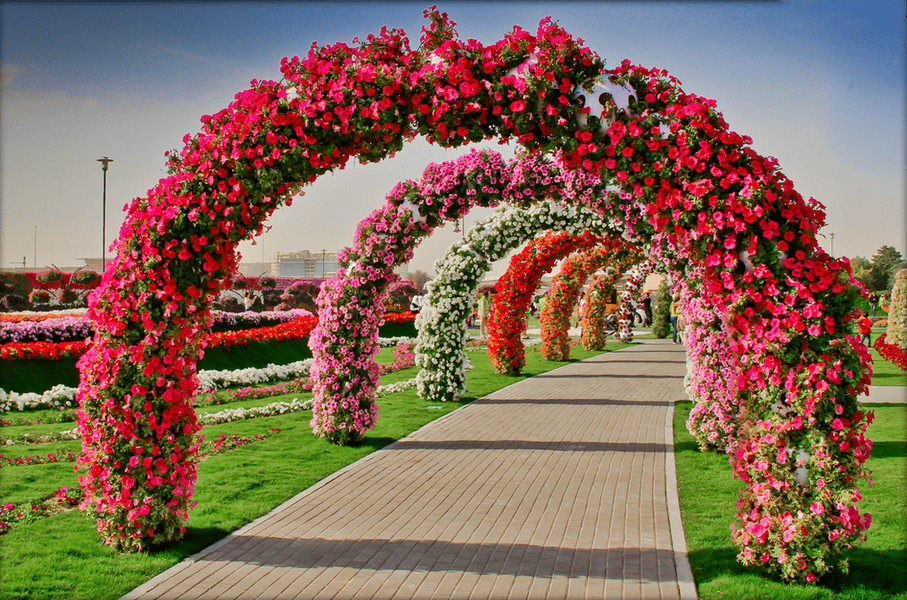 Универсальный вариант – арка, оформленная живыми цветами: розами, орхидеями, лилиями, астромериями. Для тематических свадеб можно подбирать не совсем стандартные цветы, например, полевые маки и даже подсолнухи, а также экзотические растения, лианы, плющ.