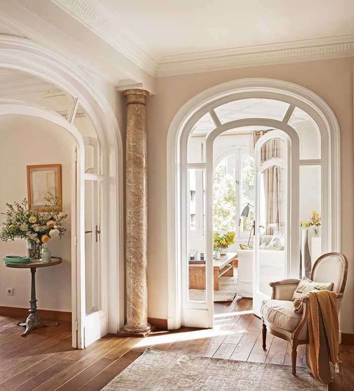 На фото арки в интерьере показан наиболее популярный способ оформления конструкции — это начальное оштукатуривание, затем покраска. Данный метод одинаково подойдёт как для применения в классическом роскошном, так и в супермодном современном стиле.