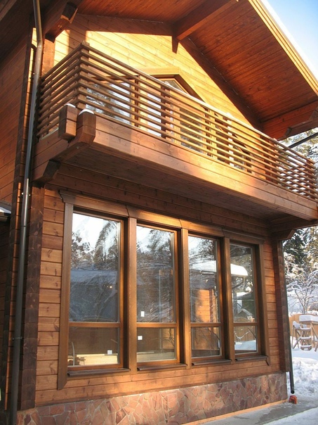 дизайн и наружный вид, перила и другие варианты ограждений для открытых балконов, устройство деревянных балконов над террасой и под крышей