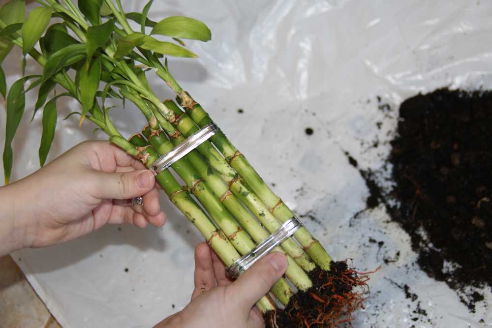 Спустя год опытные садоводы рекомендуют пересадить Бамбук в почву, при этом подкармливать растение можно начинать только после того, как оно приживется, примерно через месяц. Лучшим грунтом для Драцены Лаки является смесь дерновой земли, перегноя и торфа, также важен хороший дренаж, чтобы избежать застоя воды. Регулярный и своевременный полив — фактор, влияющий на состояние растения. Следите за листьями Бамбука: если они скручиваются, то он нуждается в более интенсивном поливе, если свисают, как тряпочки, то стоит, наоборот, уменьшить его.