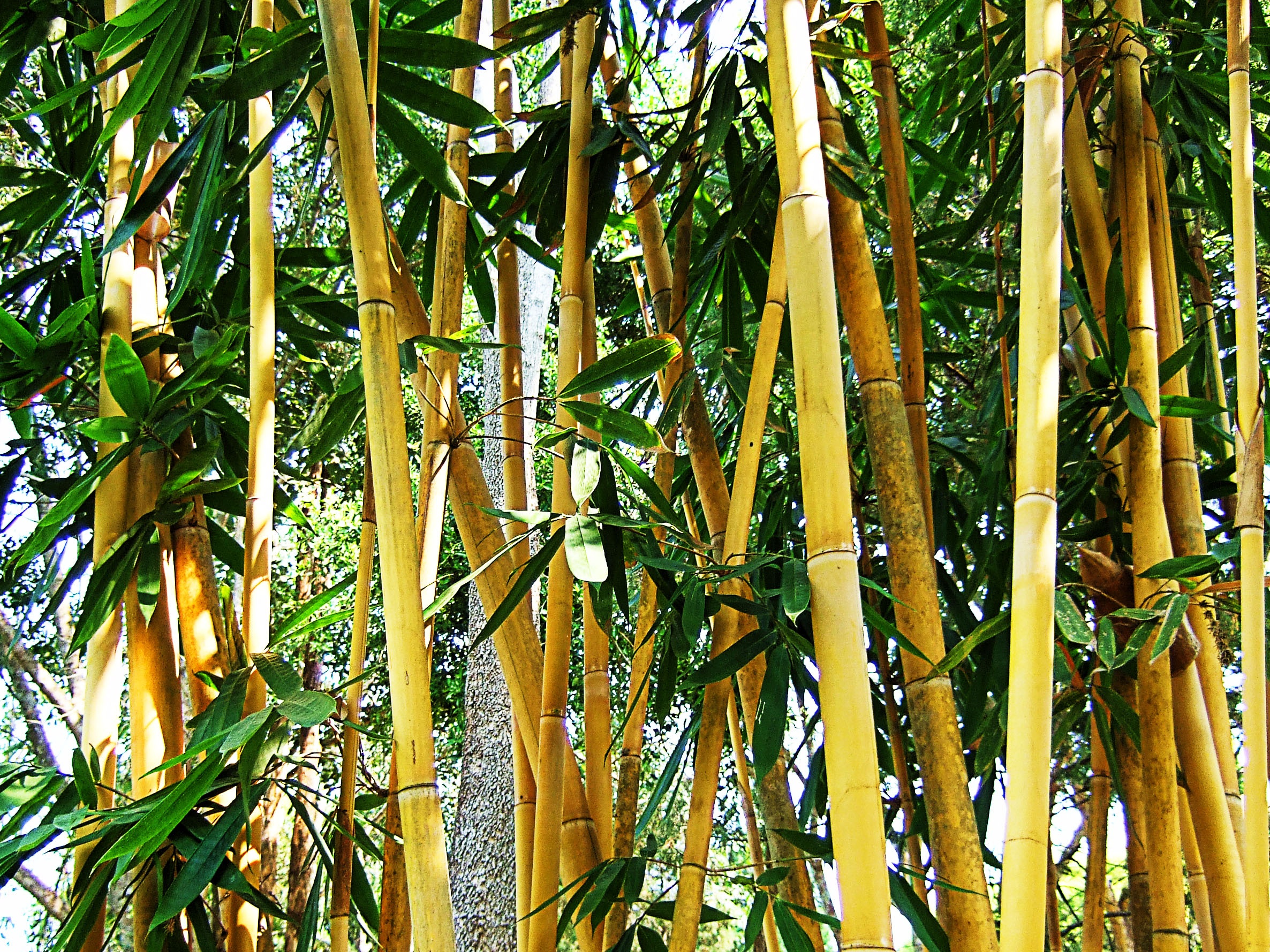 Бамбуку характерен золотисто-соломенный стебель, где на верхушке произрастает много листвы, веток и цветков.