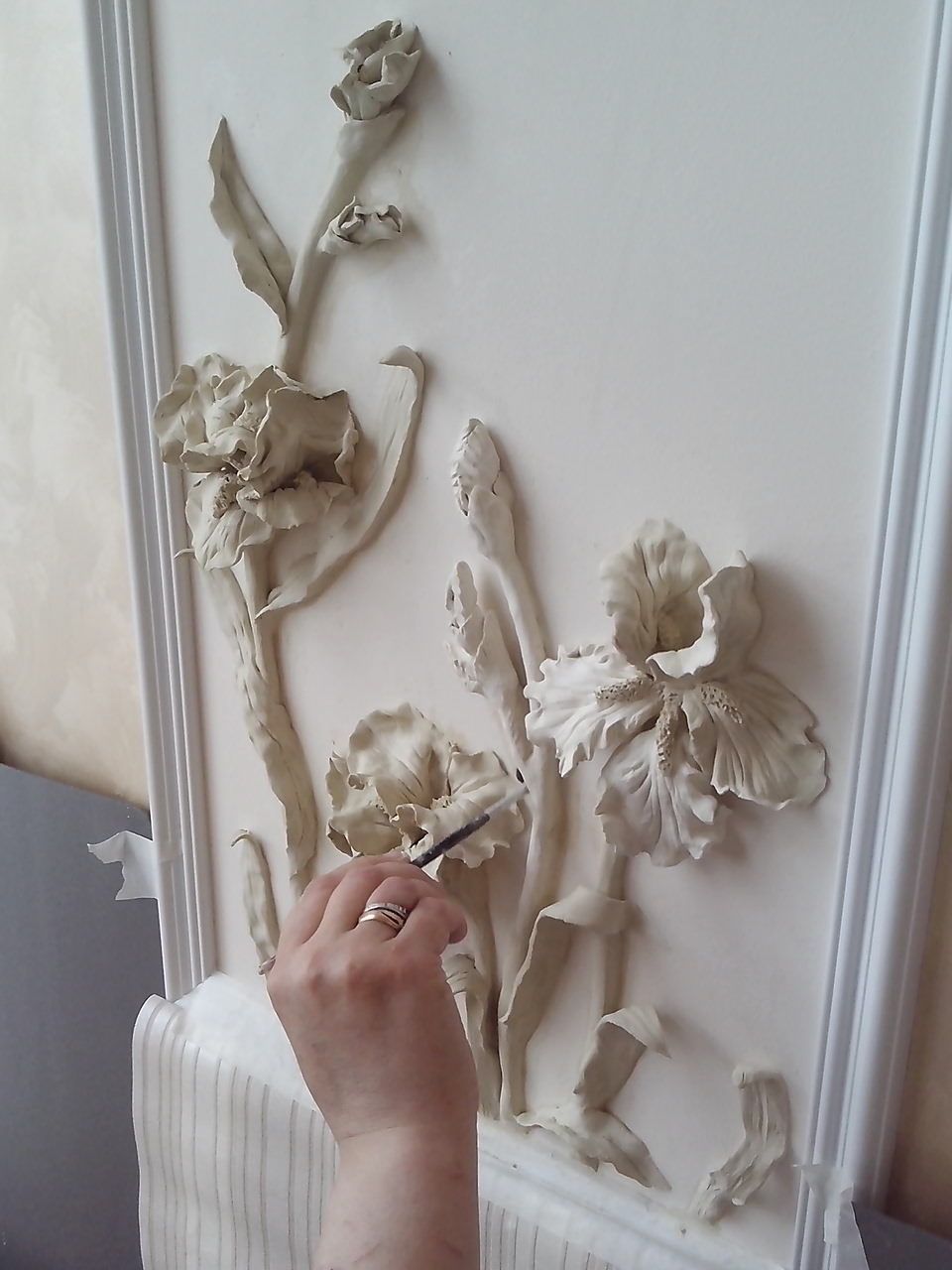 Барельеф мастерим в виде лепнины или панно. Т.е. можно налепить массу прямо на стену, по ходу работы придавая ей нужные очертания, а можно – на холсте или какой-то другой поверхности, которую вы повесите в подходящее место в виде большой картины.
