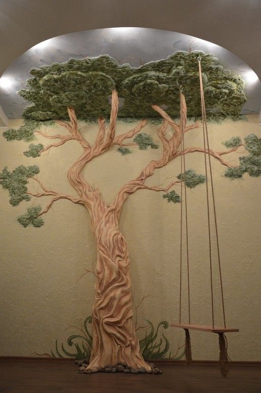 Если ни одна из предложенных идей вам не понравилась настолько, чтобы тут же приступить к ее выполнению, но очень хочется как-то красиво и необычно декорировать комнаты, посмотрите, что придумывали другие мастера. Вдруг что-то и вам приглянется или хотя бы натолкнет на собственные мысли! Имитация древесной коры – тоже вариант для воплощения! Описание прожилок на листиках уже было выше, здесь они точно такие же, по тому же принципу: