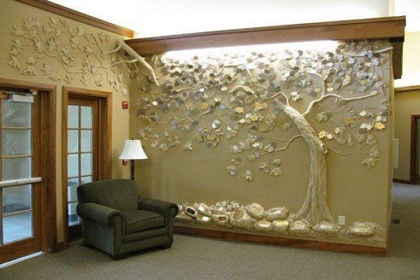 Объемное дерево на стенеНеобходимые материалы — красота с минимальными затратами