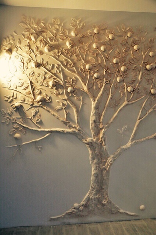 Лучше чем безвкусные фотообои: как я сделала барельеф дерева на стене, не умея рисовать | Домовой