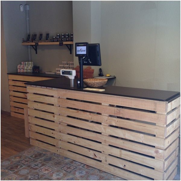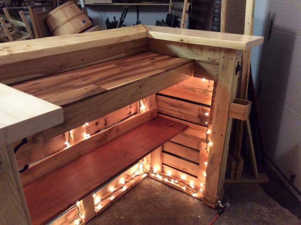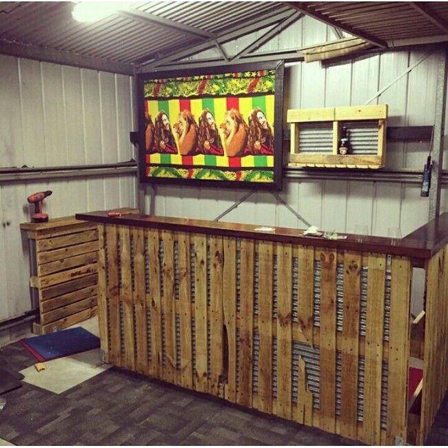 В дополнение к деревянным поддонам, добавление одного или двух табуретов и установка решетки для барбекю рядом с этой стойкой создадут идеальную комбинацию и обязательно сделают вас притчей во языцех!