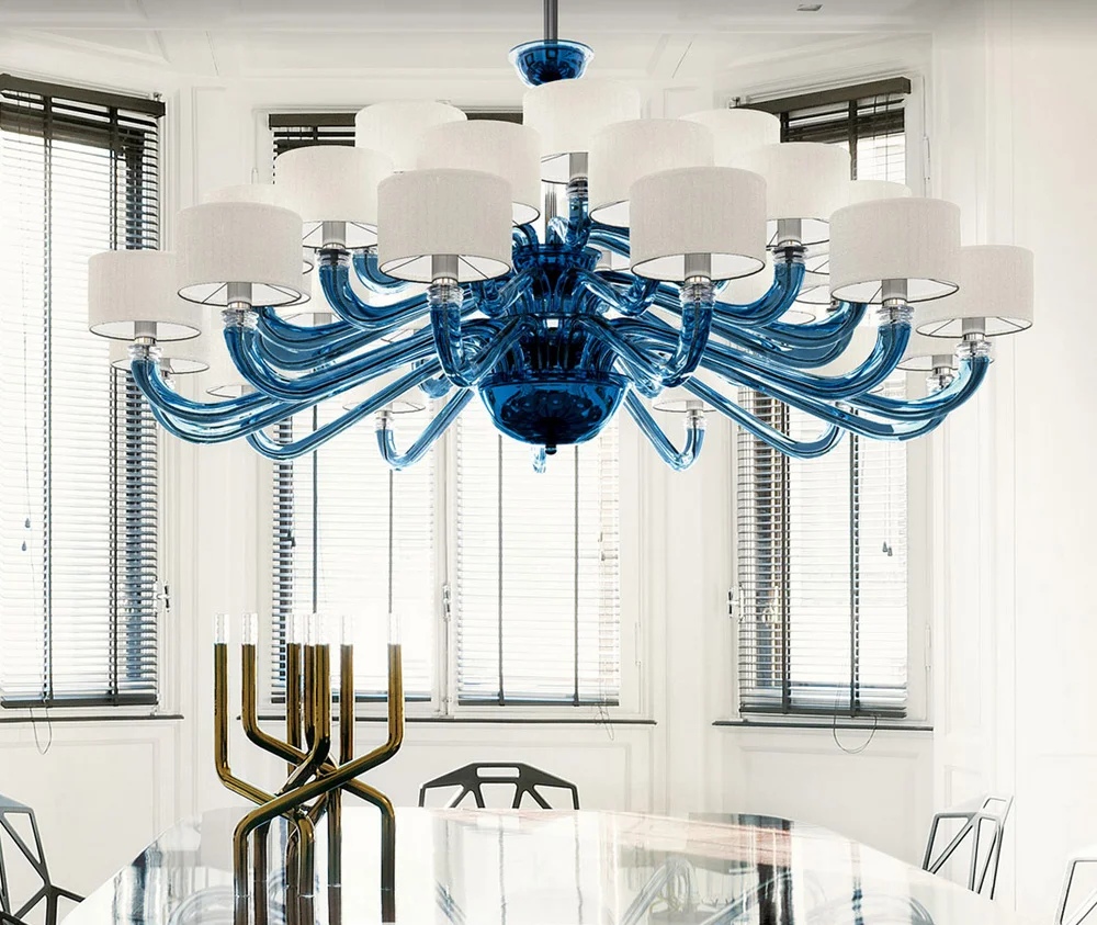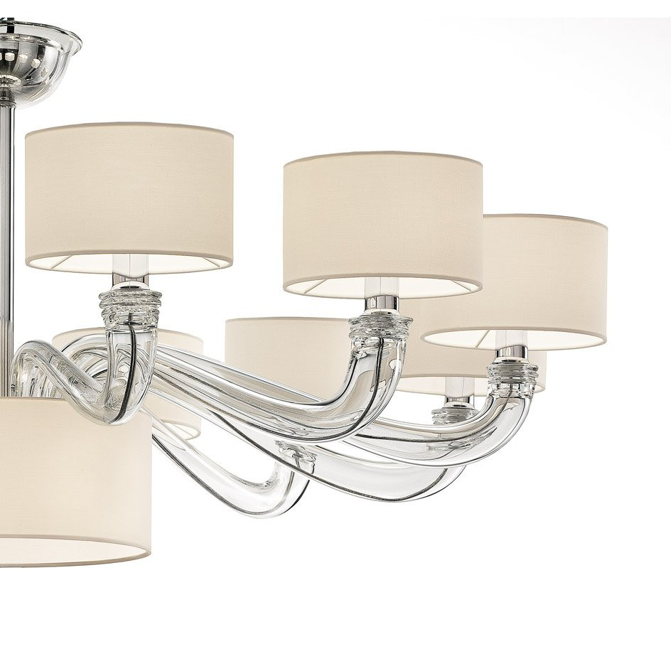 Они являются результатом удачного сочетания богатых декораций и цветов традиций венецианских люстр с простыми и элегантными линиями классического стиля.
