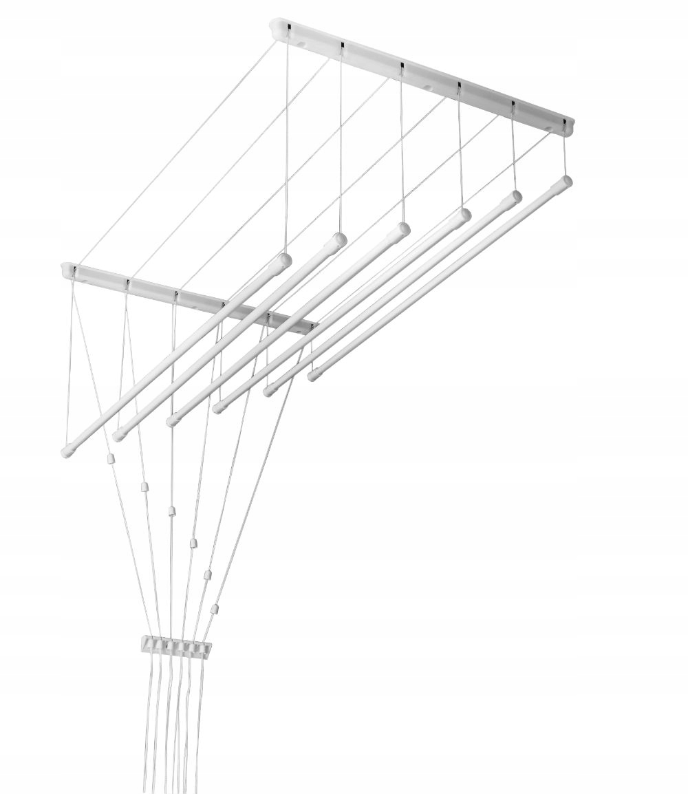 Это означает, что вам не нужно брать лестницу или стремянку, чтобы использовать сушилку, так как вы можете просто опустить ее до своего уровня, чтобы легко заполнить ее мокрой одеждой, а затем снова поднять ее из шкафа. способ высыхания одежды. Затем, когда одежда высохнет, можно снова опустить сушилку, чтобы снять ее. Подвешивание
