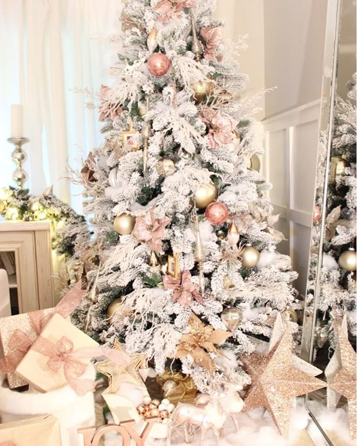 ΠΠ»Π°ΠΌΡΡΠ½Π°Ρ ΠΈ Π±Π»Π΅ΡΡΡΡΠ°Ρ Π½ΠΎΠ²ΠΎΠ³ΠΎΠ΄Π½ΡΡ Π΅Π»ΠΊΠ°, ΡΠΊΡΠ°ΡΠ΅Π½Π½Π°Ρ Π±Π΅Π»ΡΠΌΠΈ ΠΈΡΠΊΡΡΡΡΠ²Π΅Π½Π½ΡΠΌΠΈ ΡΠ²Π΅ΡΠ°ΠΌΠΈ, Π·ΠΎΠ»ΠΎΡΡΠΌΠΈ ΠΈ Π±Π΅Π»ΡΠΌΠΈ Π»Π΅Π½ΡΠ°ΠΌΠΈ, ΡΠΊΡΠ°ΡΠ΅Π½ΠΈΡΠΌΠΈ ΠΈ Π»ΠΈΡΡΡΡΠΌΠΈ