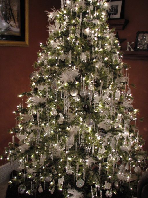 Украшение елки в бело серебристых тонах