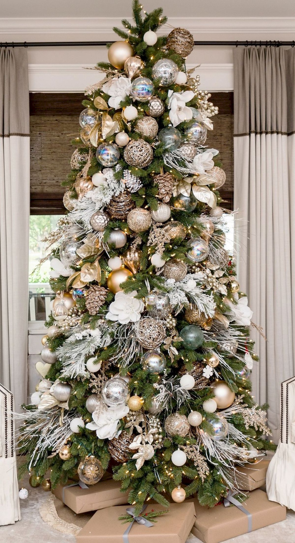 Я просто обожаю всю эту красивую упаковочную бумагу, которую продают на Рождество! Получайте удовольствие от них и покупайте те, которые сочетаются с цветами вашего дерева, чтобы получить дизайнерский вид! №
