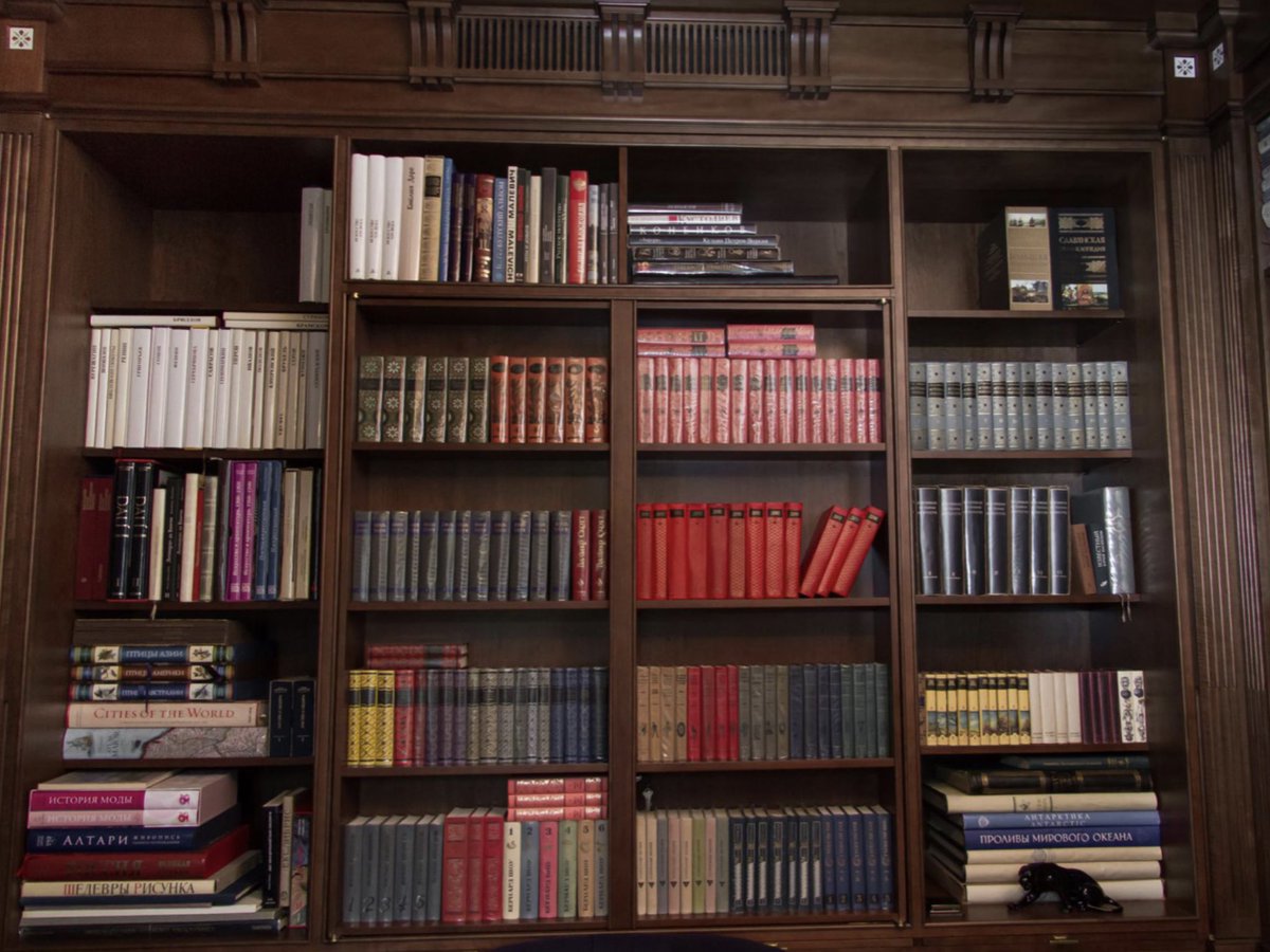 Вот краткая версия. Книги над перилами представляют собой наборы особого значения, больших размеров или особенно красивых. Под полосой книги расположены по типу, жанру и произвольному алфавитному порядку. (Например, «А» идут с «А», но не в строгом алфавитном порядке — «Остин» может стоять перед «Аткинсон».)