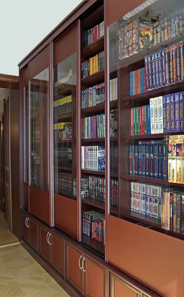 - Храните свою библиотеку шкафах закрытого типа, так как в этом случае она будет гораздо более надежно защищенной от пыли и грязи.