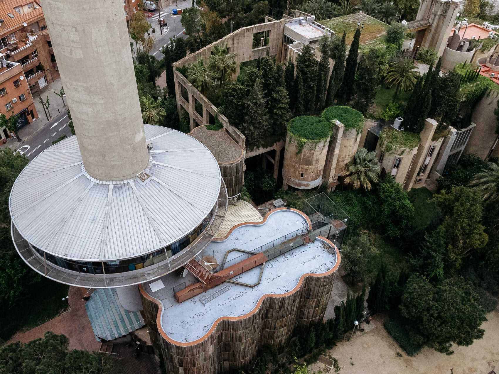 Важной фазой реконструкции было обустройство непростого ландшафта вокруг фабрики — Бофилл лично занимался интеграцией зеленых насаждений. Кипарисы и пальмы, плющи и лианы были призваны сформировать своеобразную органическую раму, смягчить индустриальный характер зданий.