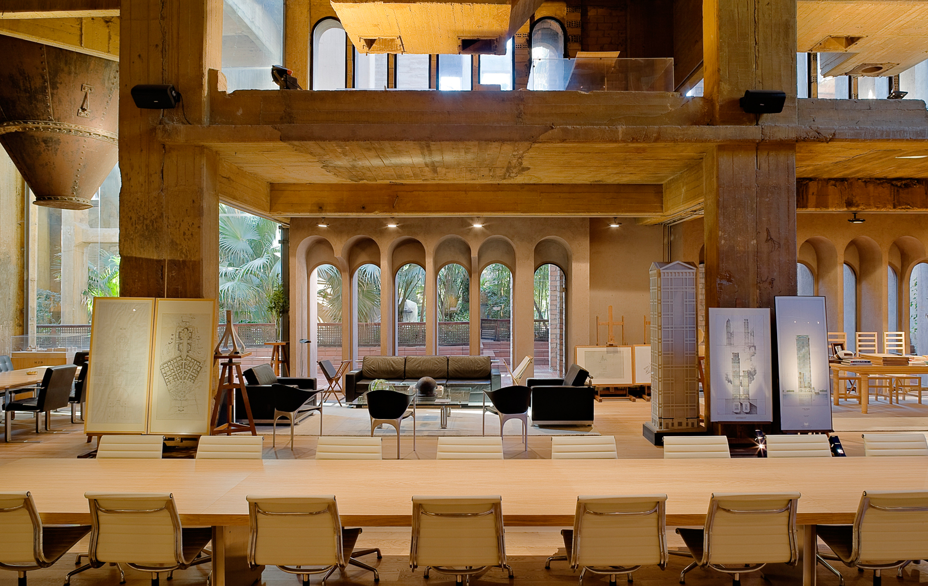 Обстановка для его коллекции модернистской мебели, фабрика представляет собой заново изобретенную структуру, «где пространство используется для всего». Бофилл подошел к ремонту с минималистичным подходом и использовал простые материалы, сохранив грубые поверхности и промышленные элементы оригинального здания.