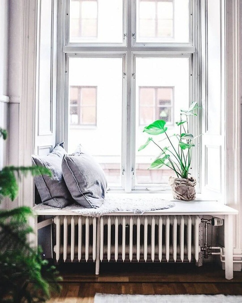 Грамотно установленный подоконник перенаправляет тепло от батареи вглубь помещения, преграждая доступ холодному воздуху с улицы. При достаточной ширине служит полкой для цветов, книг и разных мелочей, а при должном укреплении – еще и местом для отдыха и досуга.