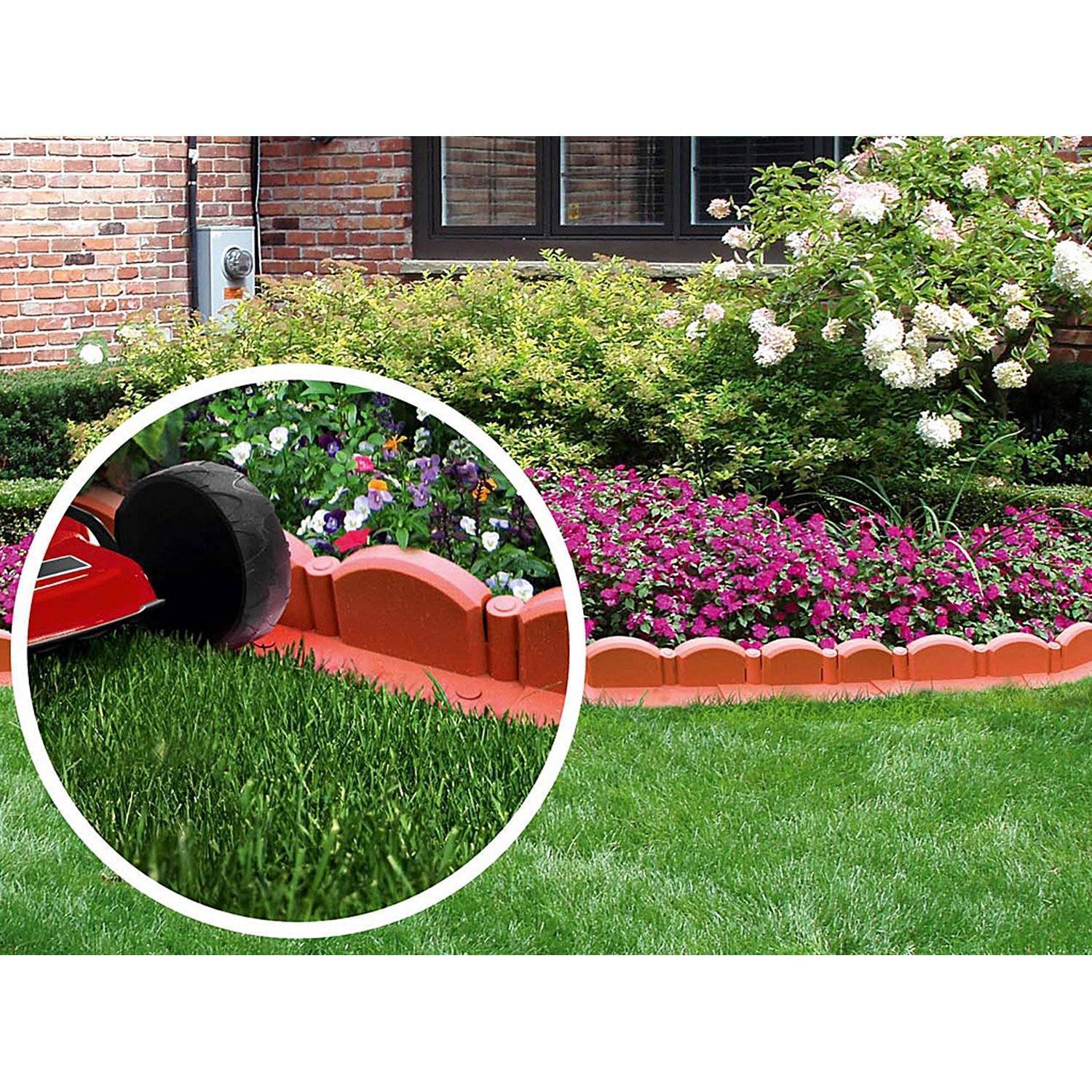 Pinsource: pinterestЭта изготовленная садовая кромка тонкая, изготовлена из пластика с кирпичной кромкой.Дополнительная комната позволяет вам больше места для посадки цветов и кустарников. Цвет не портит красивых цветов растений и прост в установке.