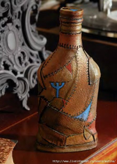 Бутылки из кожи: Декорирование бутылки кожей, мастер-класс