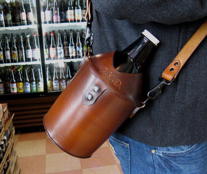 После высыхания бутылкой с декором из кожи можно пользоваться по назначению или припасти для подарка. Такому презенту одинаково обрадуется и женщина, и брутальный мужчина.