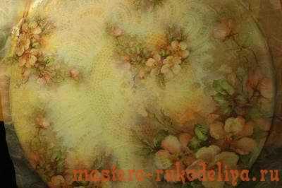 — Сверху наклеить рисовую бумагу. Работать с ней так же, как и с обычной салфеткой.