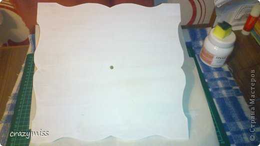 - Стекло необходимого размера, в этом случае это 30 на 30 см, с дырочкой центре для механизма. Примерно 8 мм.