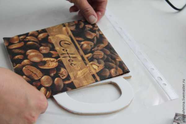Переворачиваю файл с салфеткой, сливаю излишки воды и картинкой вверх накладываю на заготовку. Прозрачный файл позволяет сделать это ровно, симметрично, без промашек. Проглаживаю файл ладошкой, выгоняя воздух и аккуратно начинаю приподнимать один из уголков файла. Салфетка должна остаться на месте.