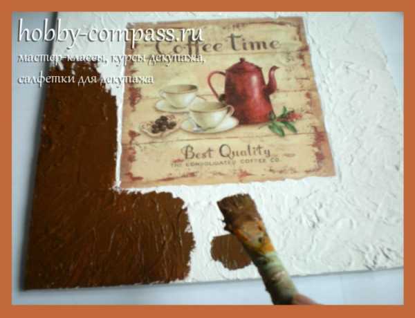 12. После высыхания на часах рельефной пасты, покроем ее акриловой краской. Цвет получается – «молочный шоколад».