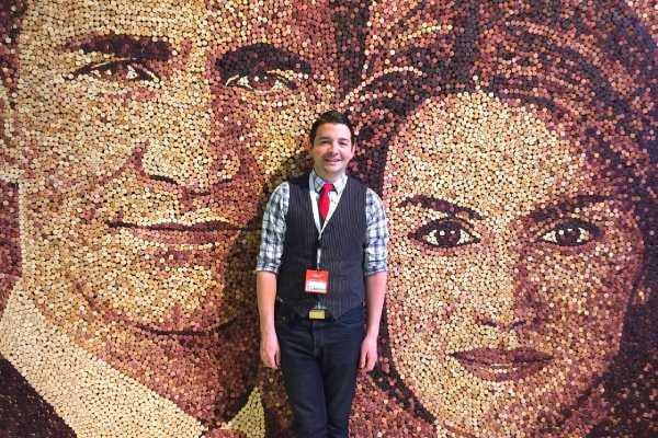 На этой картине также работа Скотта – «Триша». Этот портрет «съел» 3621 винного материала. На фотографии женщина брюнетка, но материал такой, что все становятся блондинками. В любом случае художнику удается добиться потрясающего сходства, учитывая, с каким материалом он работает. Разные цвета винных пробышек позволяют добиться необычайных эффектов светотени.