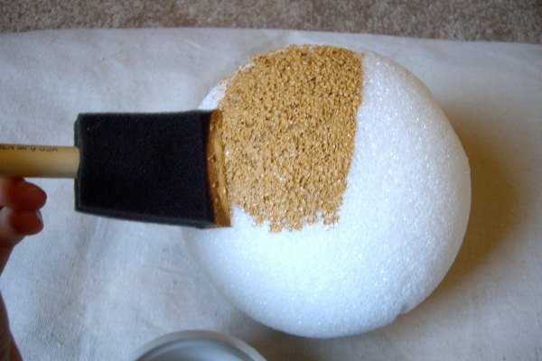 Но если его у вас нет, не огорчайтесь — можно клеить «Моментом». Работу начинаем по «экватору» шара (как на фото), а потом заполняем обе его половины.