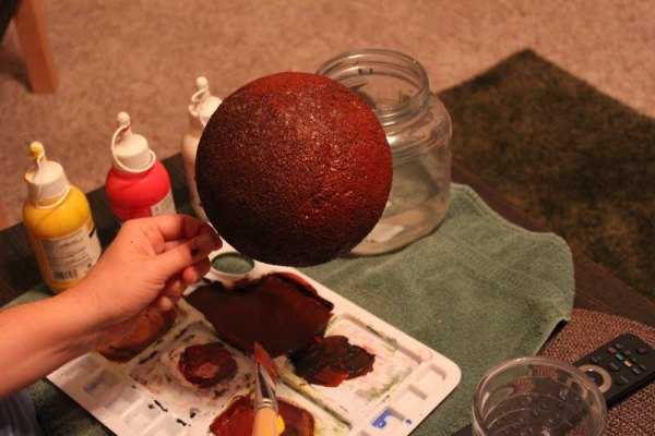 Если ваш шар темного цвета, нет необходимости его перекрашивать. Покрасить шары можно вечером, и тогда у них будет целая ночь, чтобы высохнуть.