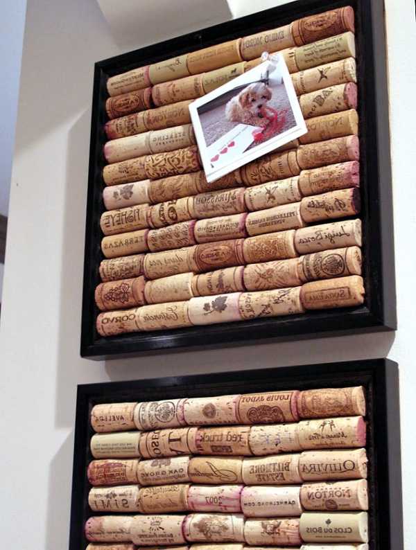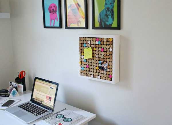 В рабочей зоне или в качестве украшения хорошо будут смотреться доски из винных пробок. На них можно вешать стикеры и открытки или просто любоваться фактурой и разными печатями. Перед тем, как приклеивать пробки, разложите их внутри рамки так, как они будут закреплены в итоге. Потому что все пробки разного размера и что-то в итоге может не очень красиво смотреться. В общем, вспоминаем тетрис.
