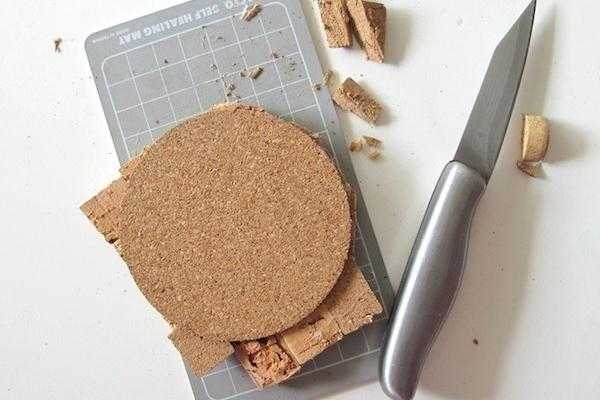 - Из пробкового листа вырезаем основу, она может быть круглой или квадратной, на ваш вкус.