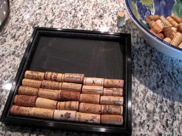 Еще пробки от вина можно красить и выкладывать из них интересные фигуры и узоры.