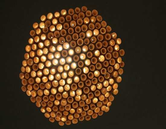 Также нам понравились настольные светильники, в которых абажур обклеен пробками.