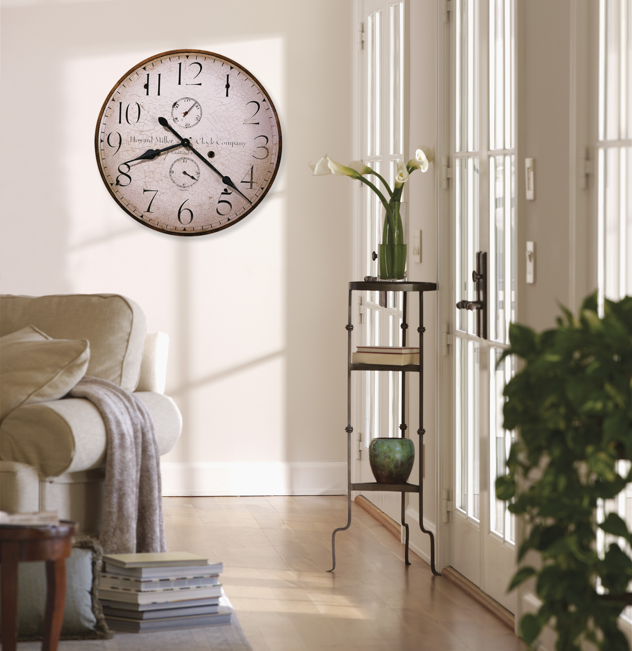 Настенные часы в интерьере гостиной