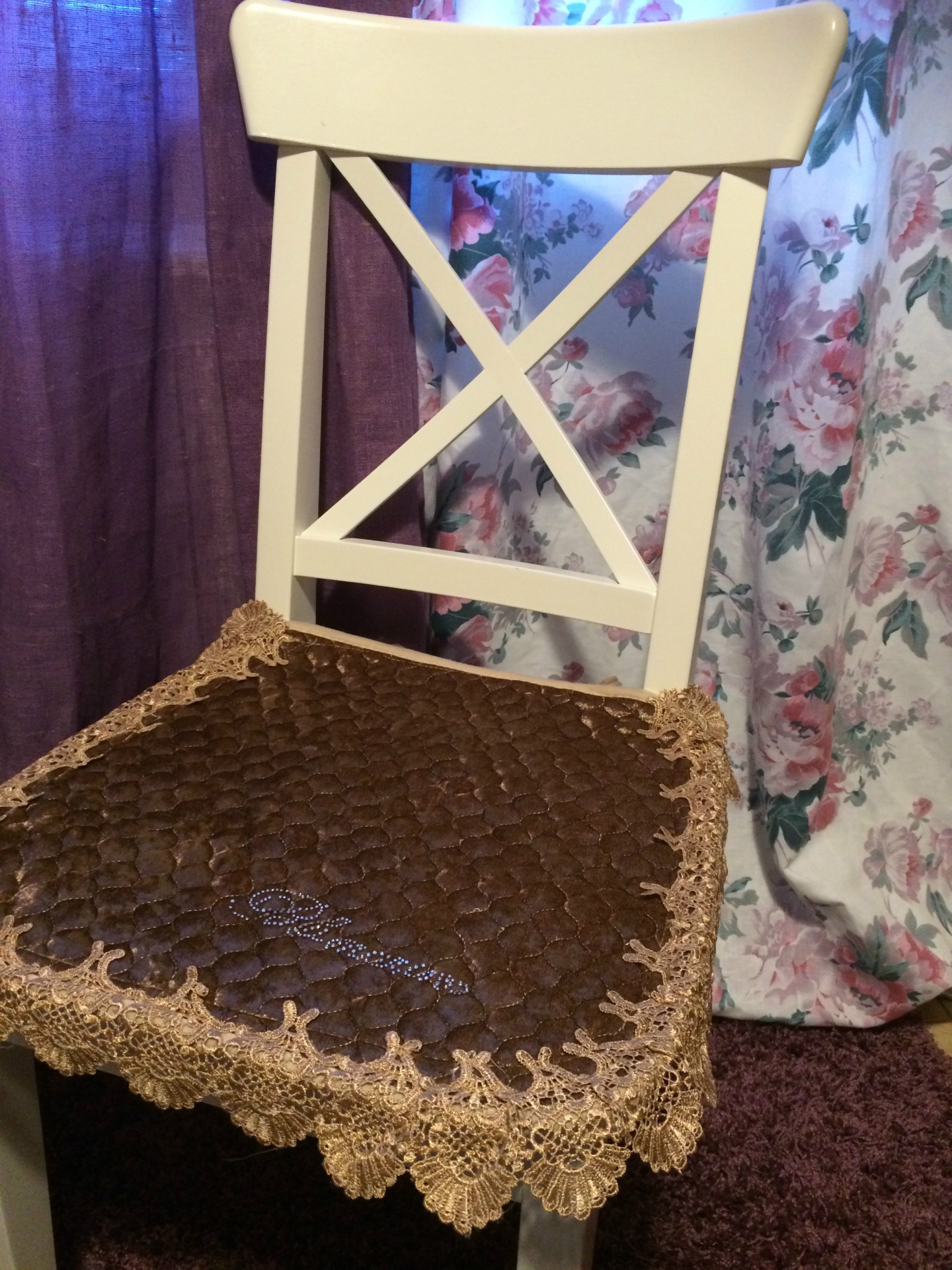 После того, как первый был закончен, на пошив каждого оставшегося чехла на сиденье кухонного стула ушло 2-3 часа.Нарезав с максимальной эффективностью, из более чем одного метра домашней ткани можно было сделать 2 покрытия.