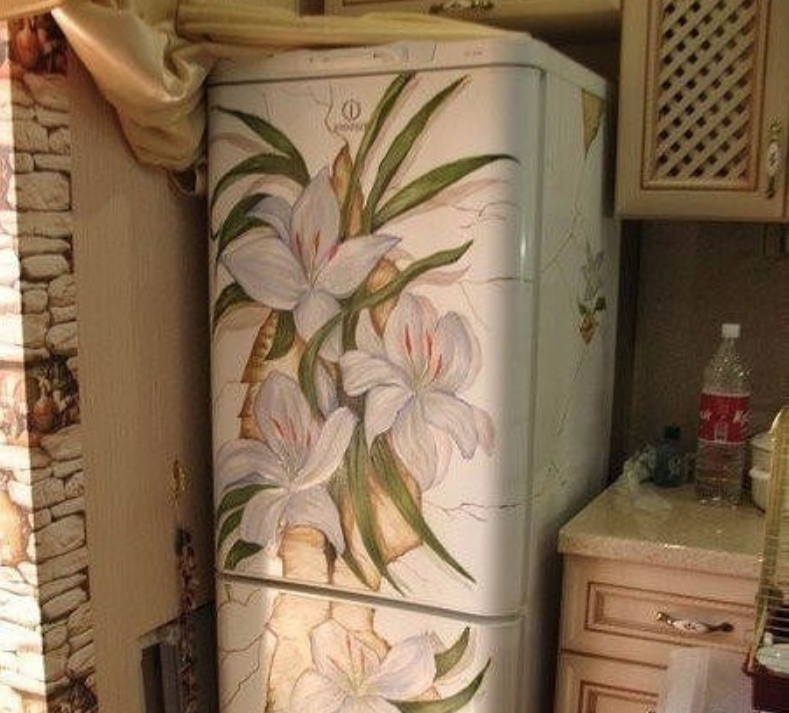 Правильным решением станет декорирование холодильника с использованием виниловой пленки.