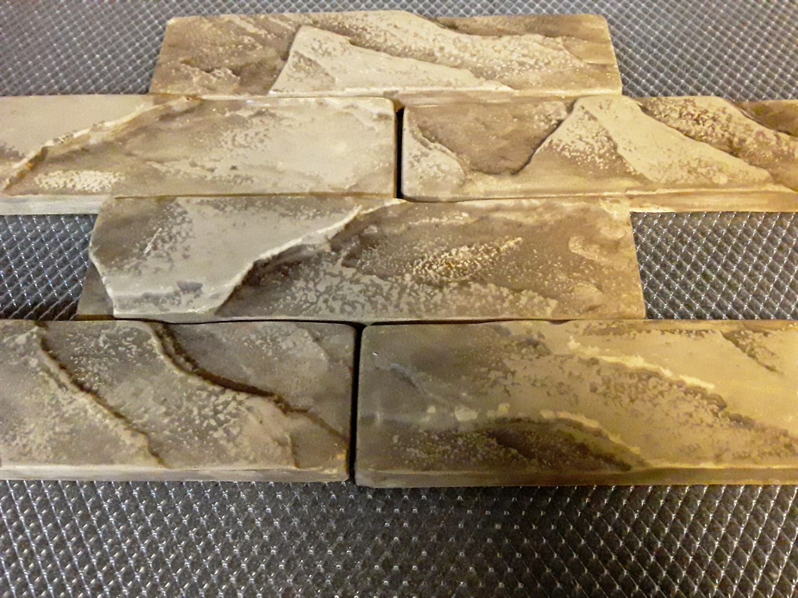 Залейте готовый раствор в матрицу, дождитесь, пока раствор начнет схватываться, зубчатым шпателем и удалите излишки с матрицы. На тыльной поверхности гипса образуется декоративная каменная полоса, благодаря чему он лучше прилегает к поверхности стены.