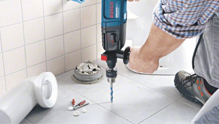 Когда вы дойдете до основы, на которую уложена плитка, замените сверло на подходящее для того материала, из которого изготовлен пол под плиточным покрытием.