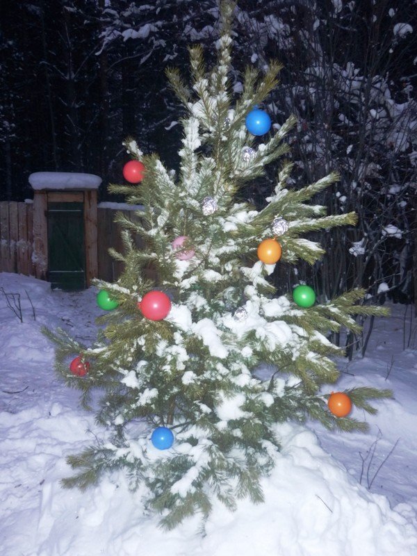Прежде всего важно помнить, что елка, растущая во дворе, живая, соответственно, большая и высокая.