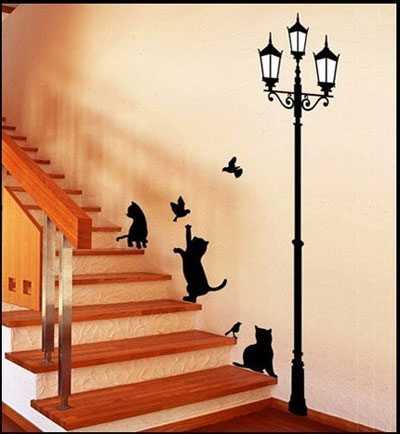 Виниловые наклейки — кошкиПодлинным украшением стен может стать следующее: