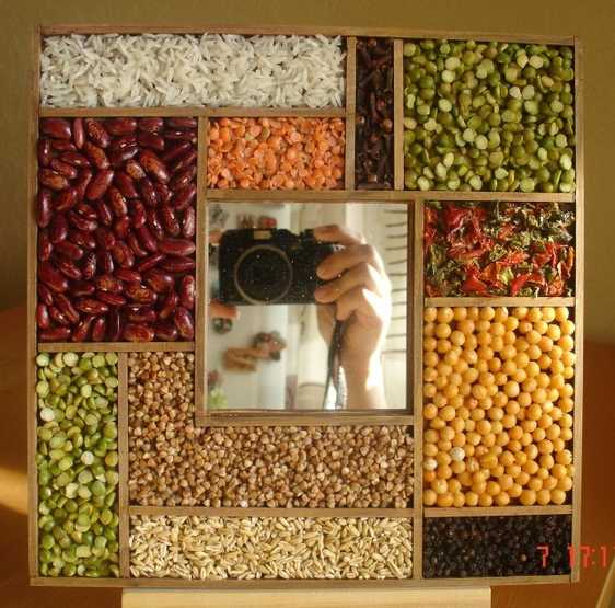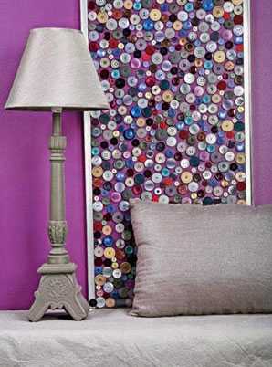 - В кухне можно декорировать мозаикой или картинами, сделанными из кофейных зерен или пуговиц. За основу можно взять ткань или кусочки обои, а можно сразу клеить зерна на стену, в предварительно приклеенную рамочку. Из разноцветных пуговиц получаются очень интересные сюжеты.