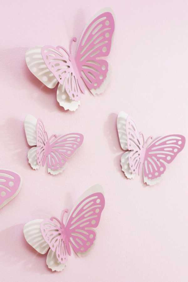 Создать объемный оригинальный рисунок можно из обычной цветной бумагой. Идеи могут быть самые разнообразные. Можно вырезать бабочек, сердечки, звездочки, цветы и украсьте ими стену детской. Такие фигуры лучше делать разных размеров, вешать их на разном расстоянии друг от друга и в различной последовательности. Например, из бабочек выложить огромное сердце.