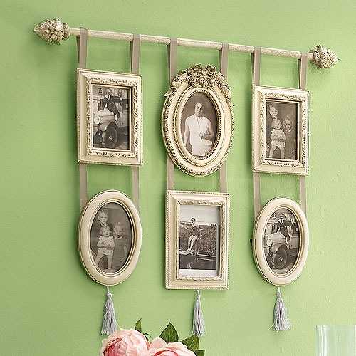 - фотогалерея из семейного архива, в красивых рамках – такие обычные идеи создают уют, как на кухне, так и в гостиной;