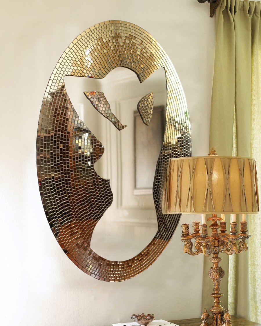 Выбирайте модели необычных форм со сложными очертаниями или фактурными рамами — они наполнят интерьер динамикой и жизнью. Только при выборе зеркал не забывайте, что прямые углы делают интерьер более строгим и респектабельным, а округлые формы, напротив, смягчают его и придают уюта.