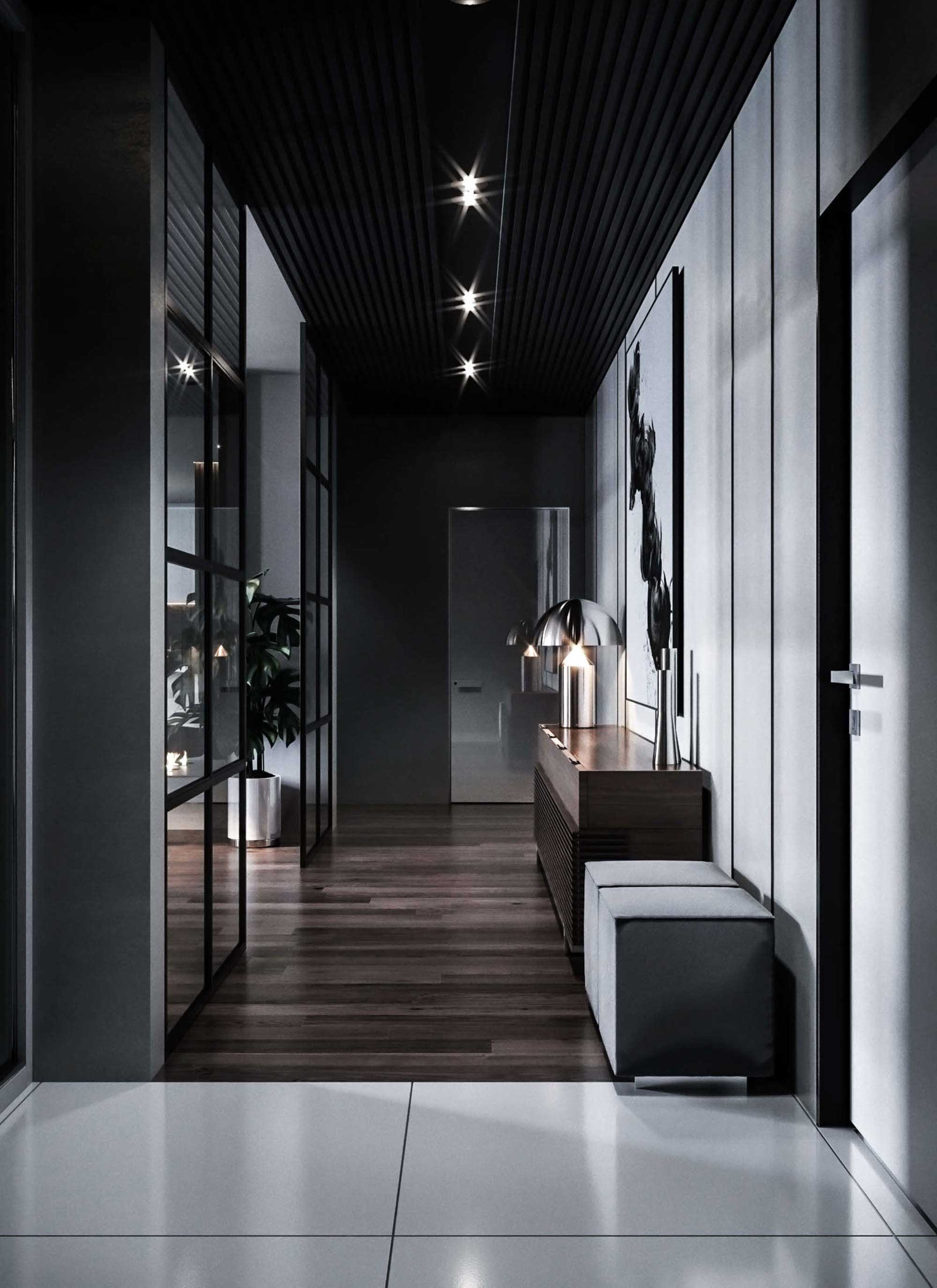 Черный потолок в прихожей: плюсы цвета в интерьере прихожей и коридора, варианты дизайна комнат, отзывы