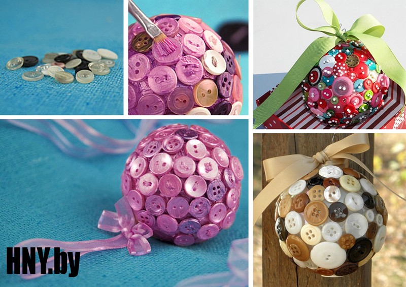 Также оригинальным вариантом будет обтянуть шар тканью, либо вязаным полотном, и прикрепить несколько бантиков из ленты, дополнив бусинами или стразами.