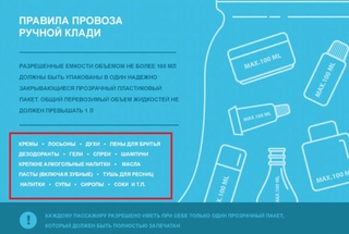 - ΠΠ΅ΡΠ΅Π»Π΅ΠΉΡΠ΅ ΠΊΠΎΡΠΌΠ΅ΡΠΈΠΊΡ ΠΈ Π΄ΡΡΠ³ΠΈΠ΅ ΠΆΠΈΠ΄ΠΊΠΎΡΡΠΈ ΠΈ Π³Π΅Π»ΠΈ Π² Π΅ΠΌΠΊΠΎΡΡΠΈ Π΄ΠΎ 100 ΠΌΠ», Π΅ΡΠ»ΠΈ Ρ ΠΎΡΠΈΡΠ΅ ΠΈΠΌΠ΅ΡΡ ΠΈΡ ΠΏΡΠΈ ΡΠ΅Π±Π΅ Π²ΠΎ Π²ΡΠ΅ΠΌΡ ΠΏΠΎΠ»Π΅ΡΠ°;