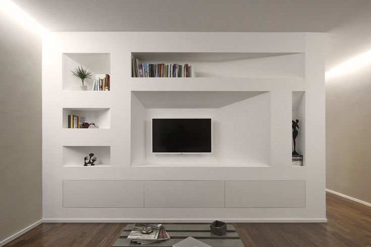 В хозблок часто ставят стиральную машину. Студия MO interior design, фотограф Дина Александрова. Дизайнер Екатерина Савкина, фотограф Мария Иринархова. Источник: houzz.ruВ нишу в гостиной можно поставить телевизор, встроить электро- или биокамин. Нишу для телевизора часто создают искусственно: заранее планируют углубление среди систем хранения или делают короб из гипсокартона.