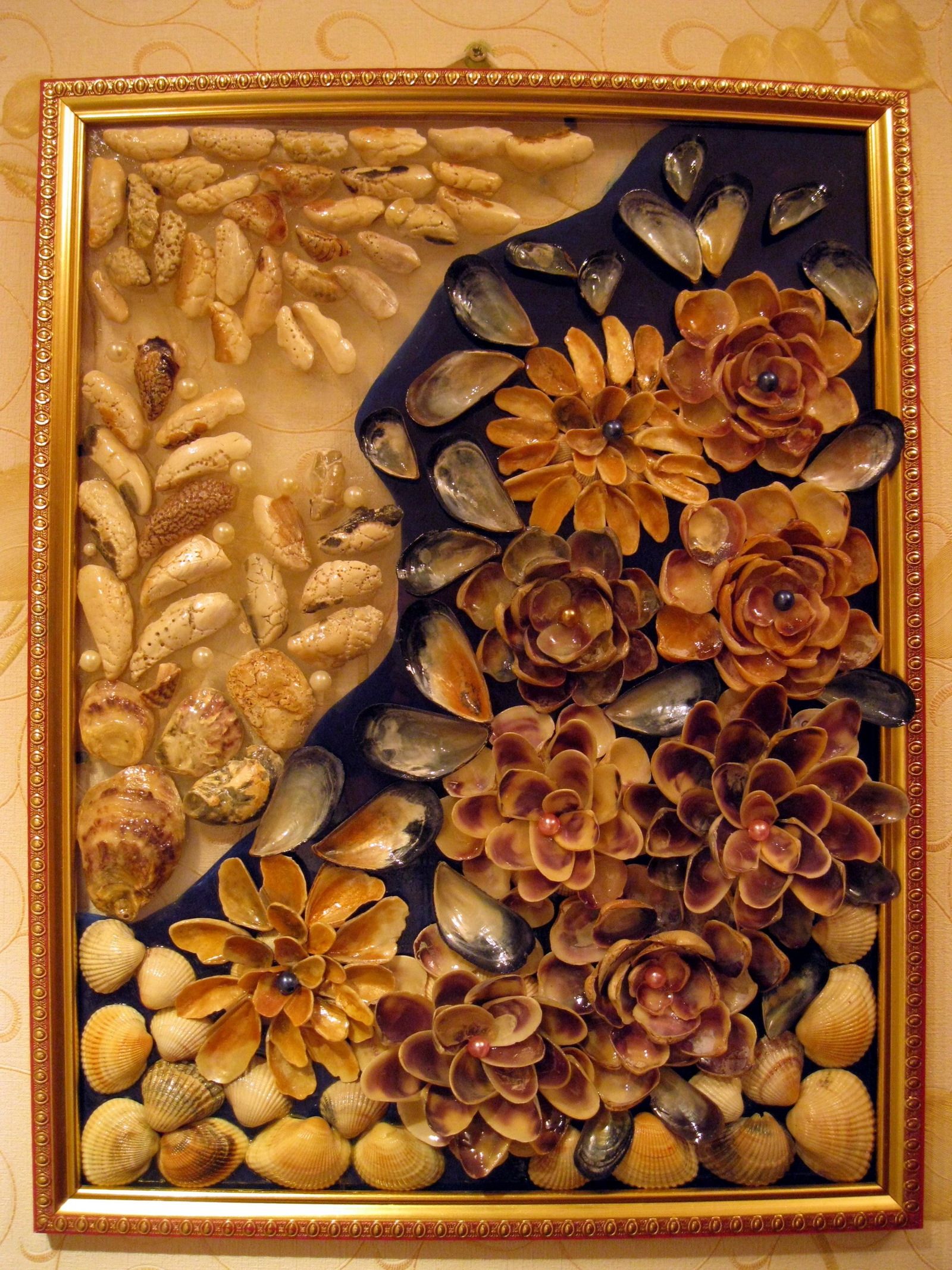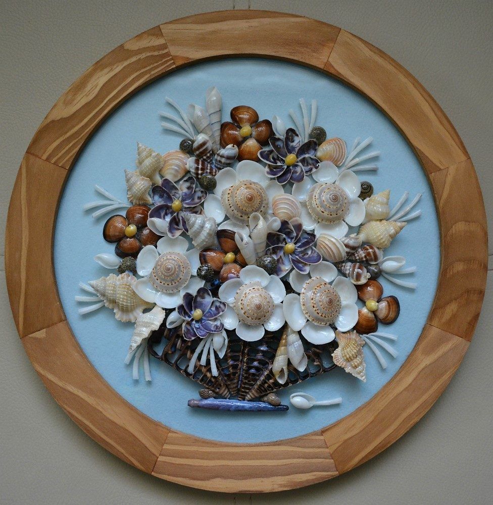 Украшение на стену из даров моряИсточник pinterest.comВариант, представленный на картинке, подойдет для оформления современного интерьера гостиной.